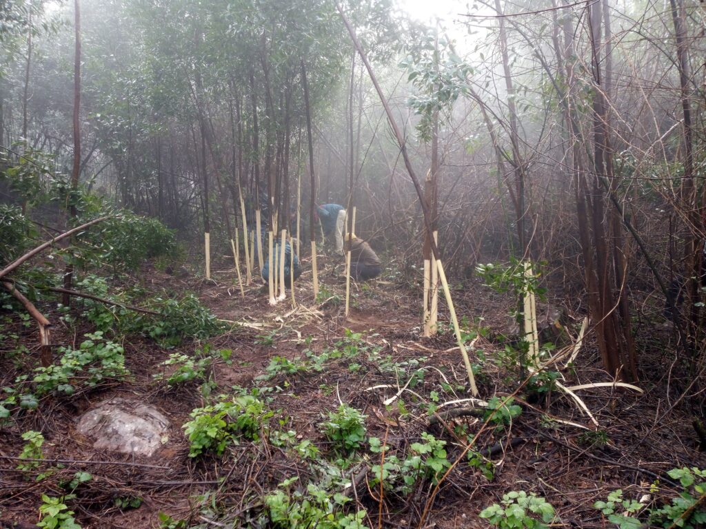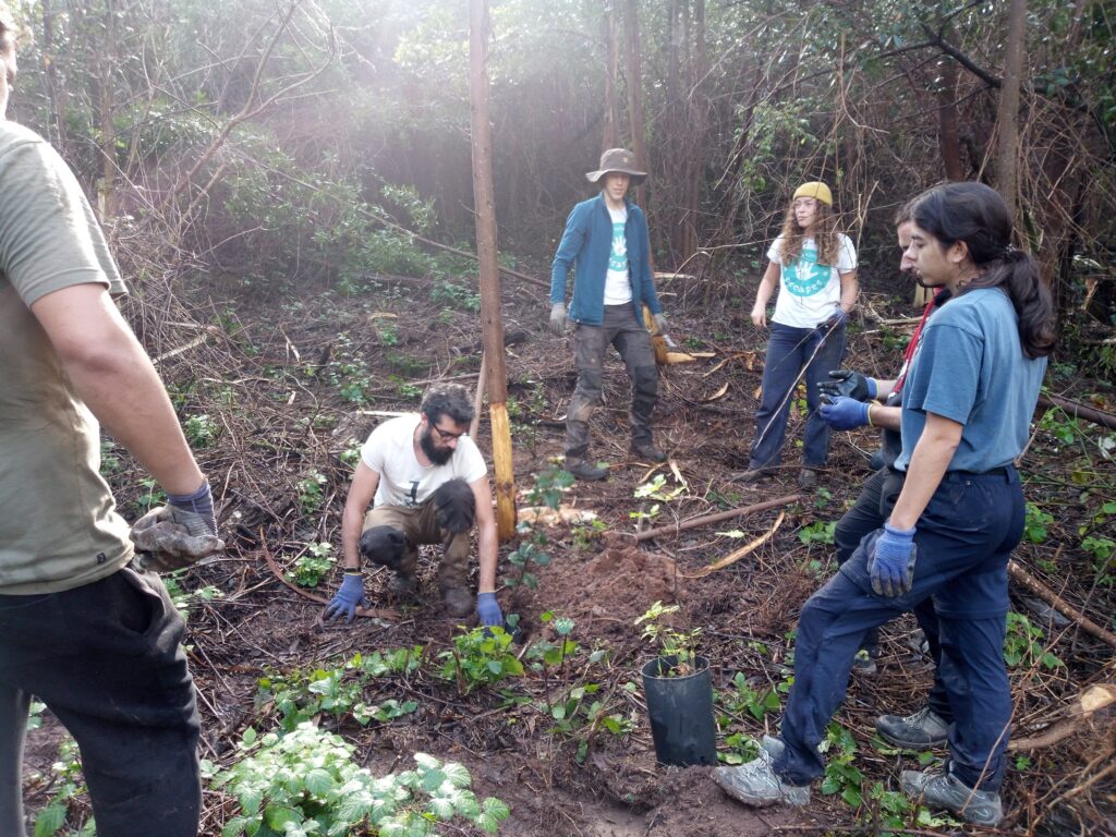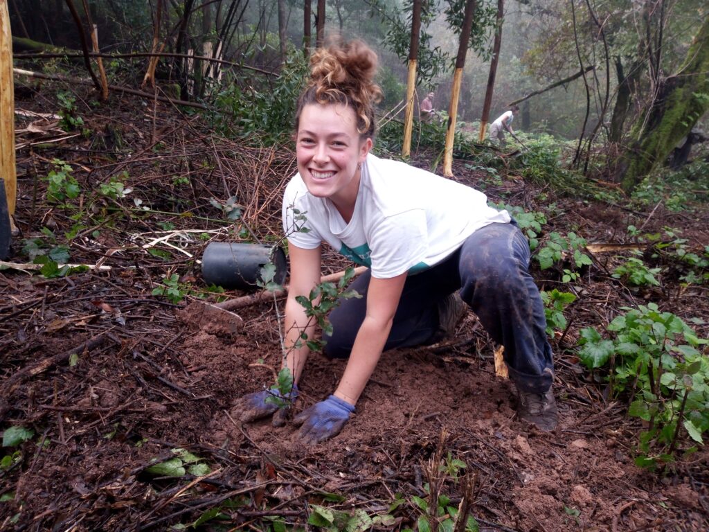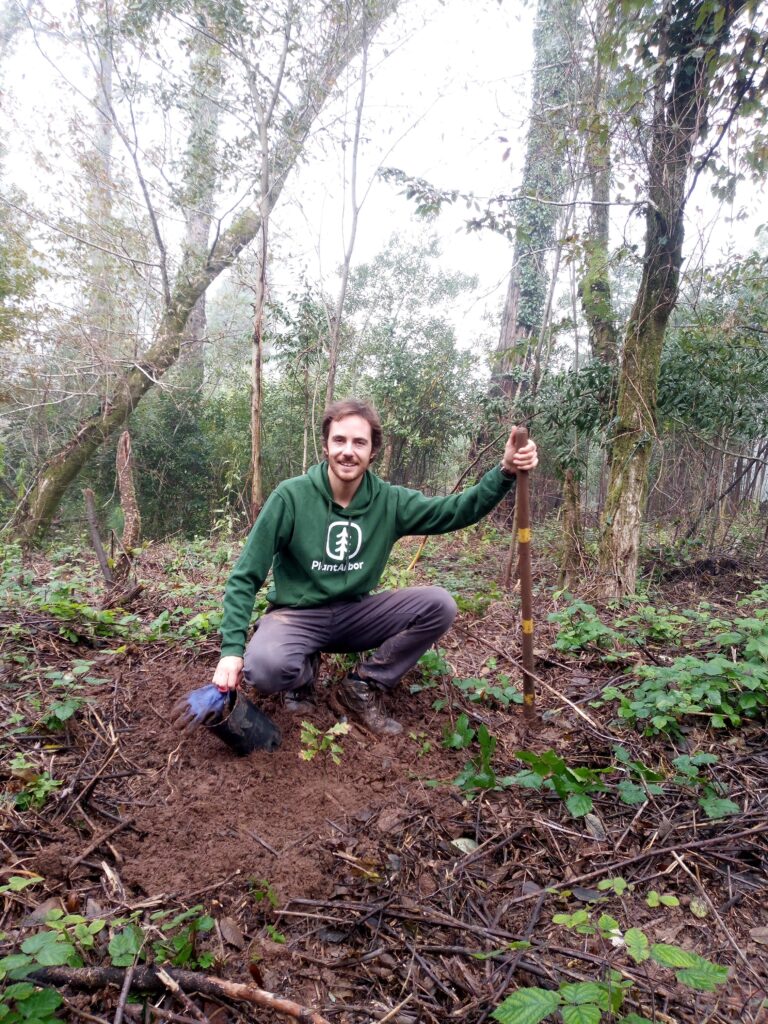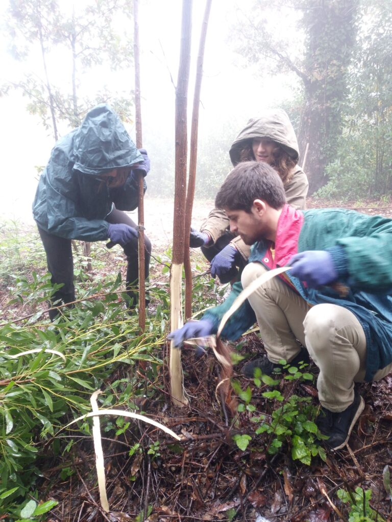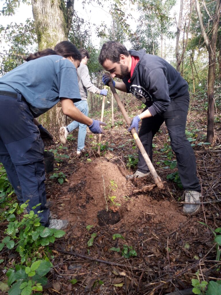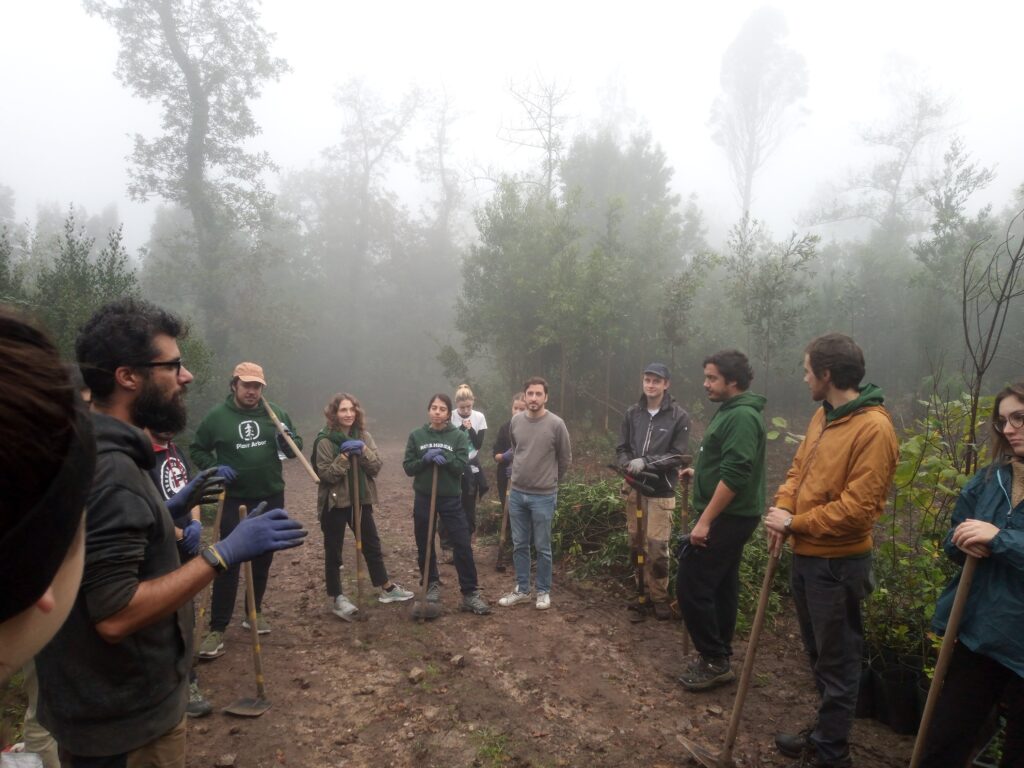 Fomos plantar na mata nacional do Buçaco logo pela manhã de sábado, dia 18, e ainda estava uma neblina bem cerrada na serra. Encontrámo-nos com os nossos parceiros da Plantar uma Árvore, em particular com o colega Gil, que nos recebeu muito bem e nos apresentou o resto da equipa, composta por voluntários de vários países europeus. A primeira metade da manhã foi passada a fazer o controlo de espécies invasoras, e a segunda metade a plantar árvores!